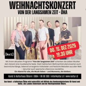Mit ihrem aktuellen Programm "Von der langsamen Zeit" schenken die sieben Musiker dem Advent eine musikalische Seele. Statt hektischem Weihnachtstrubel erwarten euch besinnliche Klänge, liebevoll arrangierte Volkslieder und festliche Melodien aus aller Welt – darunter auch spanische villancicos navideños.