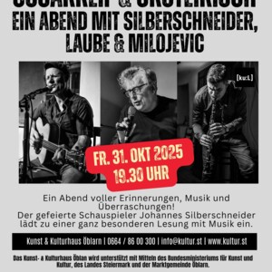 Begleitet wird der Abend mit Musik von Georg "Schurl" Laube (Gesang, Gitarre) und Milosh Milojevic (Klarinette), garniert mit feinen literarischen Texten von Herms Fritz – mal nachdenklich, mal heiter, aber immer unterhaltsam.