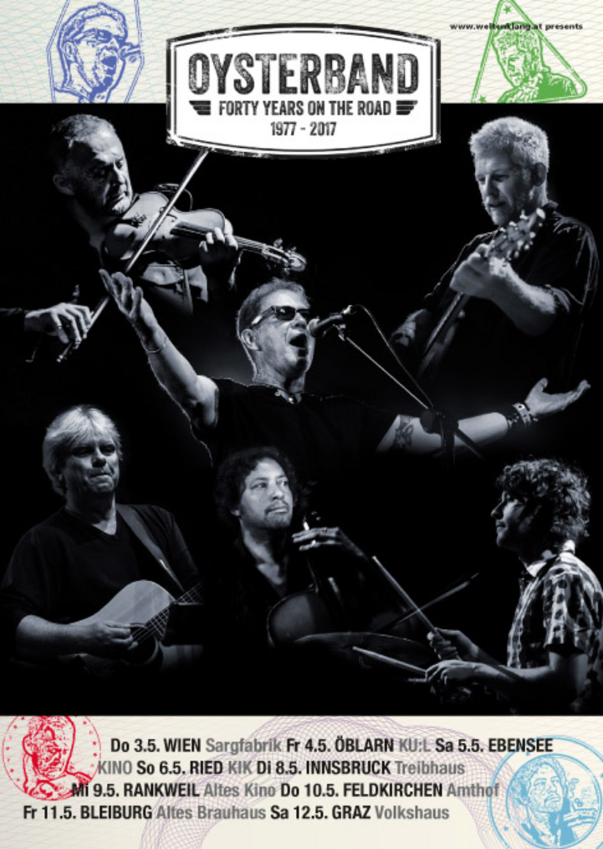 Die OYSTERBAND gehört seit 40 Jahren zu den wichtigsten Impulsgebern der britischen Musik-Szene und wird seit Jahren von der Fachpresse als "beste Roots-Rock Band Englands” umjubelt. Ihre Wurzeln liegen zwar im Folk, hat man diese Kapelle dann aber einmal live erlebt, steht fest, daß es sich bei der OYSTERBAND auch um eine der besten Rock-Formationen überhaupt handelt. Das Publikum weiß dies zu honorieren, und so wird jeder Aufrtritt der OYSTERBAND zu einem brodelnden Tanz-Spektakel.