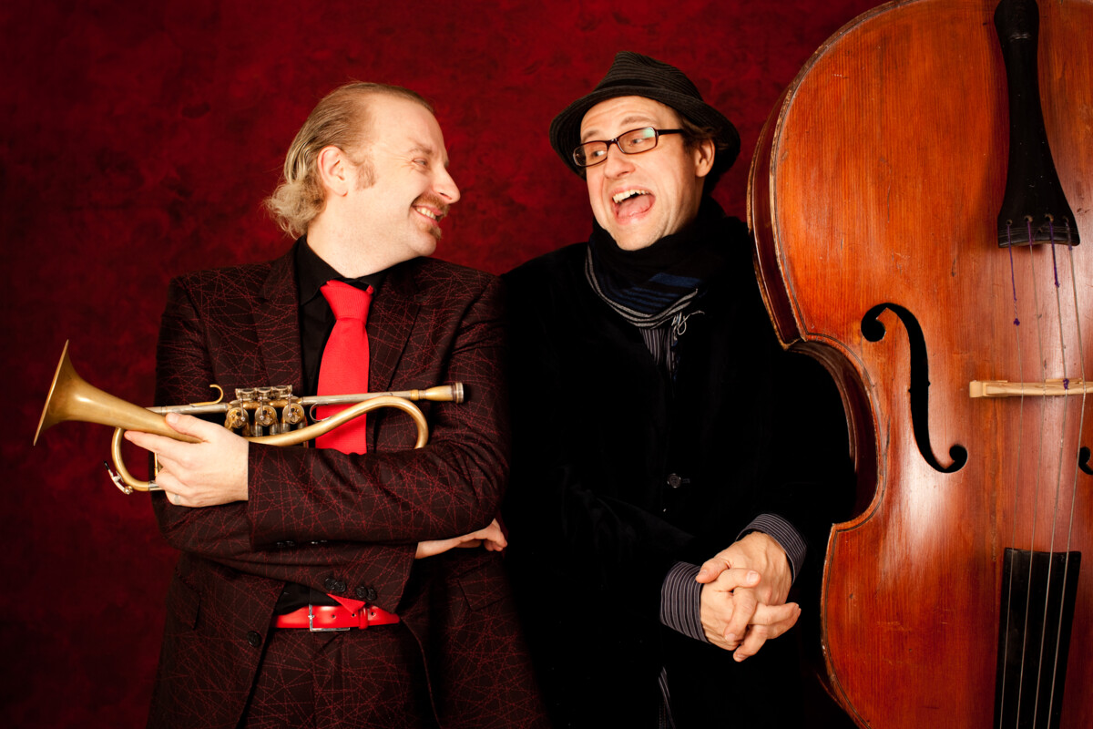 Thomas Gansch: Trompete, Stimme Georg Breinschmid: Kontrabass, Stimme Befreundet sind Thomas Gansch und Georg Breinschmid seit 1997; kennengelernt haben sich die beiden just zu dem Zeitpunkt, an dem sie sich unabhängig voneinander dazu entschlossen, der an der Wiener Musikhochschule studierten Klassik den Rücken zu kehren, und sich dem Jazz zuzuwenden. Man teilte die Leidenschaft für Musik und Monty Python und beschloss, gemeinsame Sache zu machen. Im Rahmen einer Jamsession wurden die beiden vom Fleck weg von Mathias Rüegg für das Vienna Art Orchestra engagiert, in dem sie auch die folgenden Jahre tätig waren. Da die Musiker des international renommierten Ensembles nur selten Zugaben spielten, wurden der Trompeter und der Bassist oft gebeten, nach Ende des Programms für den musikalischen Abschluss zu sorgen. Diese Draufgaben wurden mit der Zeit immer länger, bis sich der Wunsch in den beiden manifestierte, es auch einmal abendfüllend zu versuchen. Das ist nun bereits Jahre her - inzwischen zählen Thomas Gansch und Georg Breinschmid zu den führenden Persönlichkeiten der heimischen Jazz- und Weltmusikszene und genießen auch international sehr hohe Reputation. Was beide Musiker besonders auszeichnet, ist neben ihren spielerischen Fähigkeiten und der Spontaneität vor allem das enorm breite stilistische Spektrum. Mal geben sich die beiden Ausnahmemusiker als Traditionalisten, mal tauchen sie tief in den Bereich der Improvisation ein, mal widmet man sich der Weltmusik, mal dem Pop oder Blues. Schillernd, vielseitig, virtuos (wie auch ihre Projekte Mnozil Brass oder Brein's Café) - das Duo Gansch/Breinschmid ist live wie auf Tonträger ein einzigartiges Erlebnis.