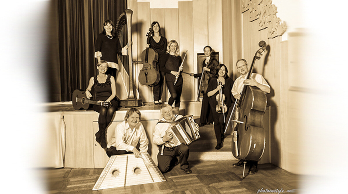 Ein klassisches Ensemble mit Flöte, Violine, Viola, Violoncello und Harfe- dem Kammerensemble der Volksoper Wien- vereinen sich mit einem Volksmusikensemble, bestehend aus Harmonika, Hackbrett, Gitarre und Kontrabass.