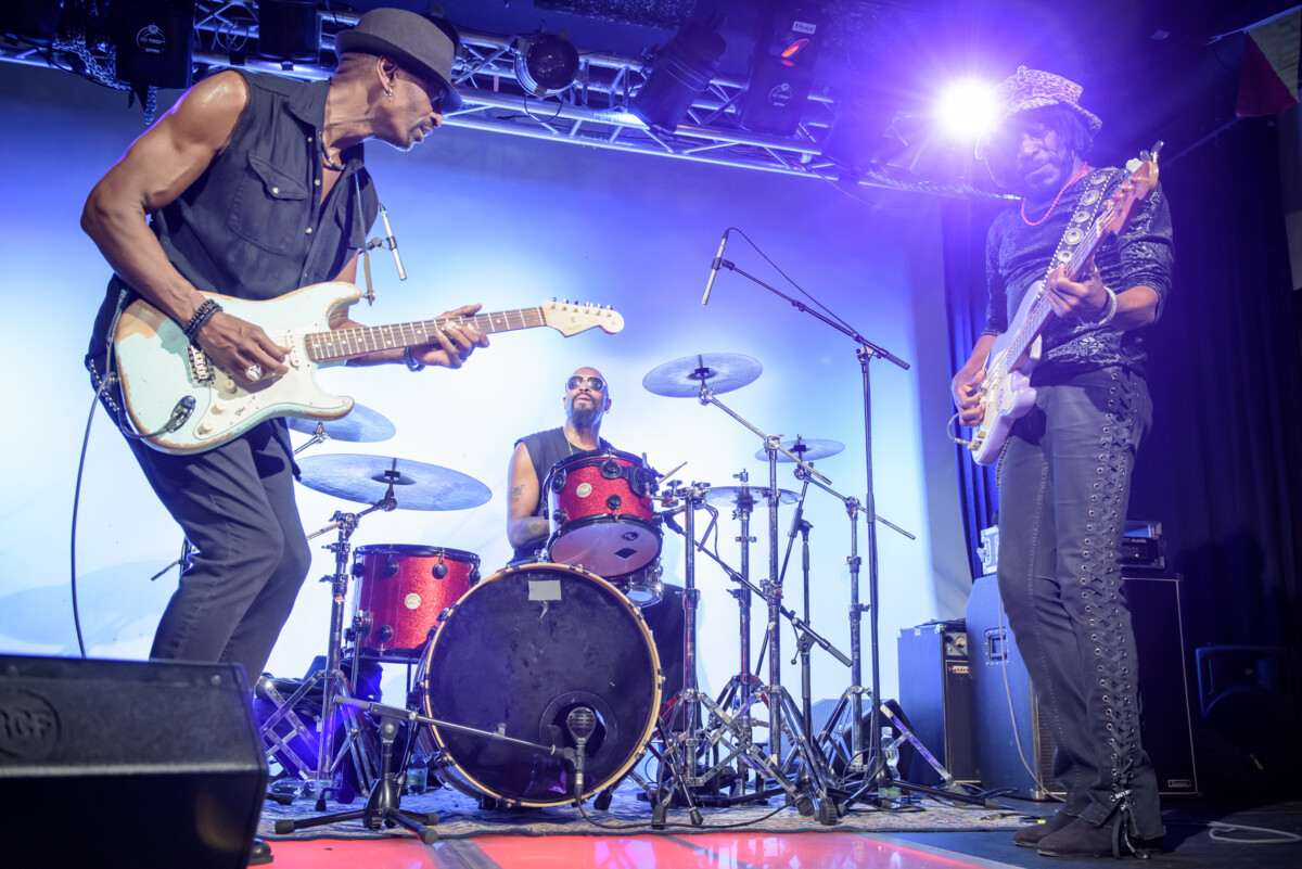 Sein Bassist Sam Correa aus Harlem/NY hat die ganze Palette aus Slap-Techniken und melodiösem oder pumpendem und hypnotisierenden Bass-Sound auf Lager und der Drummer Raymond Johnson, der schon mit Chaka Khan, Bobby Brown, Michael Henderson oder Jeffrey Osborne spielte, ist eine wuchtige und treibende Power-Station.